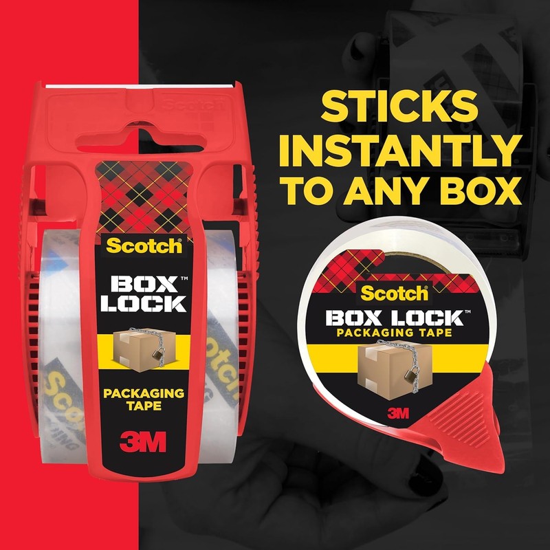 Scotch Box Lock Packaging Tape with Dispenser, 1.88 inch x 800 inch (22.2 yd), 2 Rolls, Clear Heavy Duty Packing/Shipping Tape, Extreme Grip – Sticks Instantly to Any Box for Secure Seal