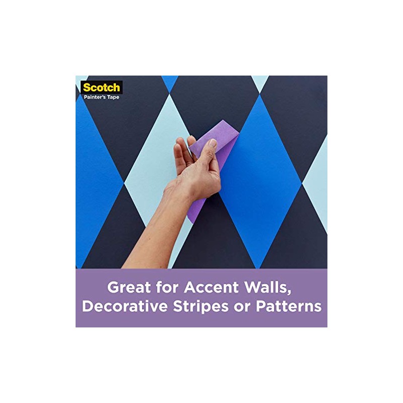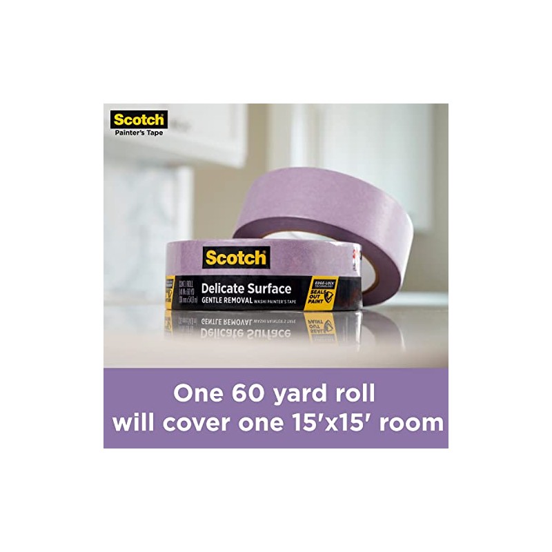 Scotch Delicate Surface Painter's Tape delivers a professional look that's easy on your delicate surfaces, whether you're protecting your hardwood floors from paint splatter or going all out with a decorative mural. This purple tape features Edge-Lock Technology that seals out paint to deliver sharp paint lines and removes cleanly for your more delicate projects, including accent walls, decorative stripes and patterns. Designed for surfaces like wood floors, wallpaper, cabinets and freshly painted walls (painted at least 24 hours ago)—Scotch Delicate Surface Painters Tape can stay on for up to 60 days and removes easily without leaving behind a sticky residue. Made from 50% renewable resources with a core made from 70% post-consumer waste, this solvent-free masking tape is a sustainable painting product. To use, apply the painting tape firmly onto the surface and let sit for 30 to 60 minutes before painting. Wait until the paint is dry before removal. The best paint jobs start with Scotch Painter's Tape. With a full range of adhesive solutions, Scotch Brand Painter's Tape delivers confidence in superior results to get the job done well and effectively the first time.
