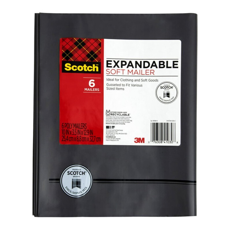 Scotch Expandable Soft Poly Mailer, Self-Seal, 10 in x 12.9 in with 3.75 in. Bottom Gusset, 6-Pack
