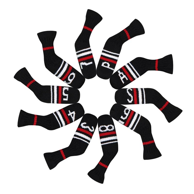 Scott Edward ゴルフアイアンヘッドカバー 10個 かわいいに靴下の形 洗濯可能 耐久性 ゴルフクラブヘッドプロテクター ブラック