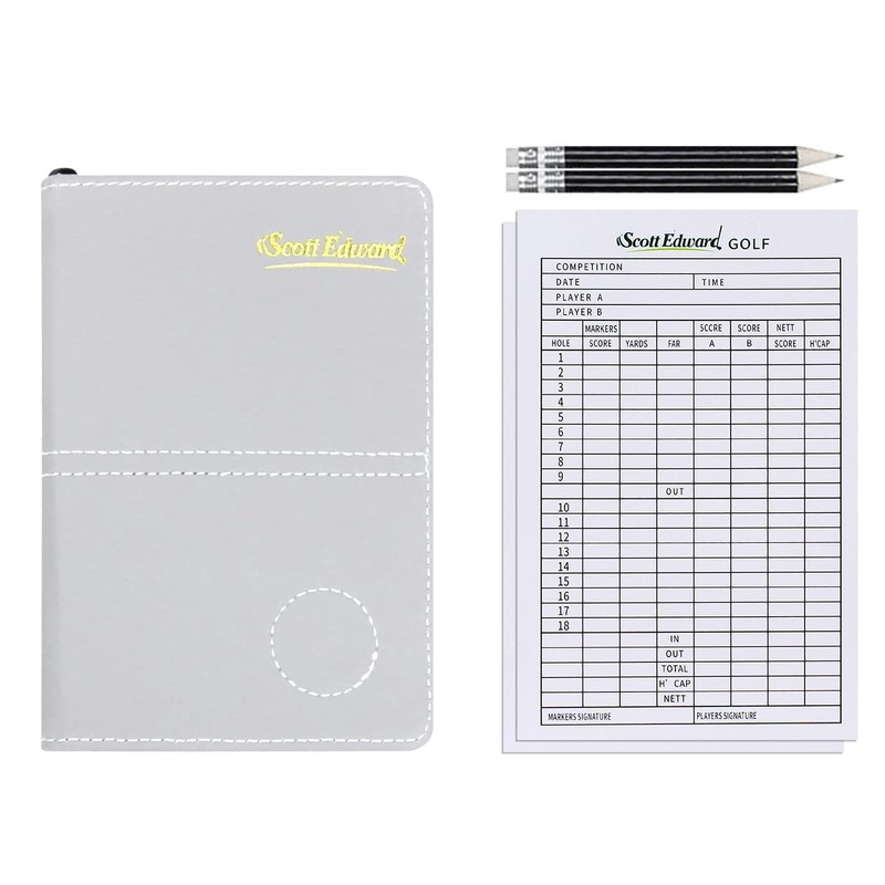 Scott Edward ゴルフ スコアカードカバー レザー スコアカードホルダー 統計とスコアトラッキング 防水 ソフト 厚手 ブラック グレー グレー