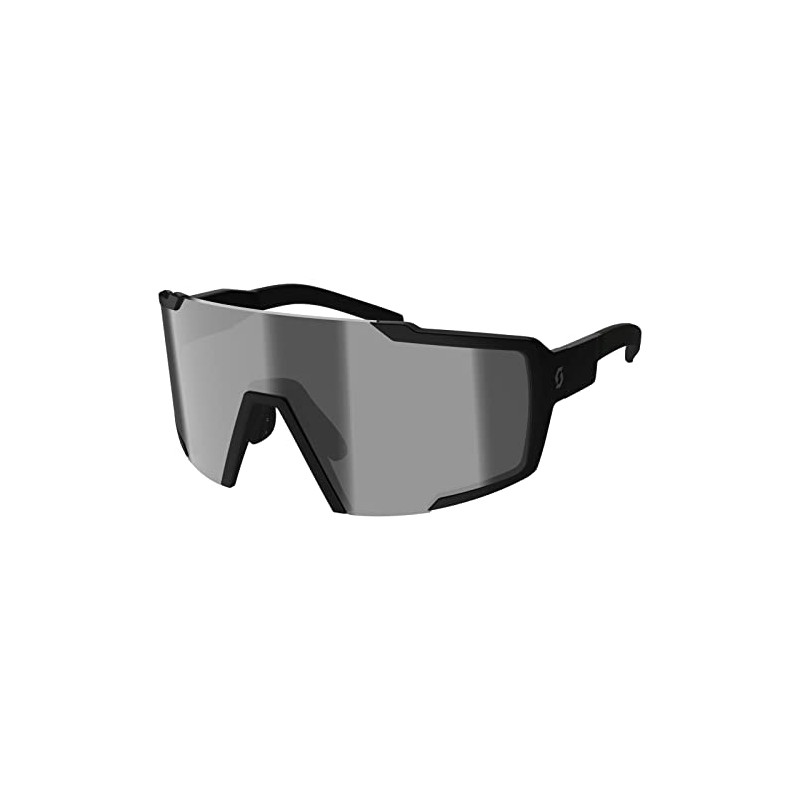The Shield Compact is optimized for narrower faces. The glass is 4mm narrower, which brings the frame closer to the face and ensures a better fit. Race tested and stylish - all in one piece. The Shield Compact sunglasses combine a frameless, cylindrical design with a huge field of vision and completely and comfortably cover the rider's eyes. The photosensitive photochromic lens is self-tinting. Details: Fit: for small to medium face sizes, Scott Fusion Frame interchangeable lenses, optimised helmet integration, non-slip, adjustable nose piece, non-slip temples, special fit for narrow faces, Scott Precision Optics, lens quality, Scott light sensitive photochromic technology, shock protection, maximum field of view, extra large lens cover, 100% UV protection, Scott laser print, weight approx. 32 g hard case with microfibre bag. Material: