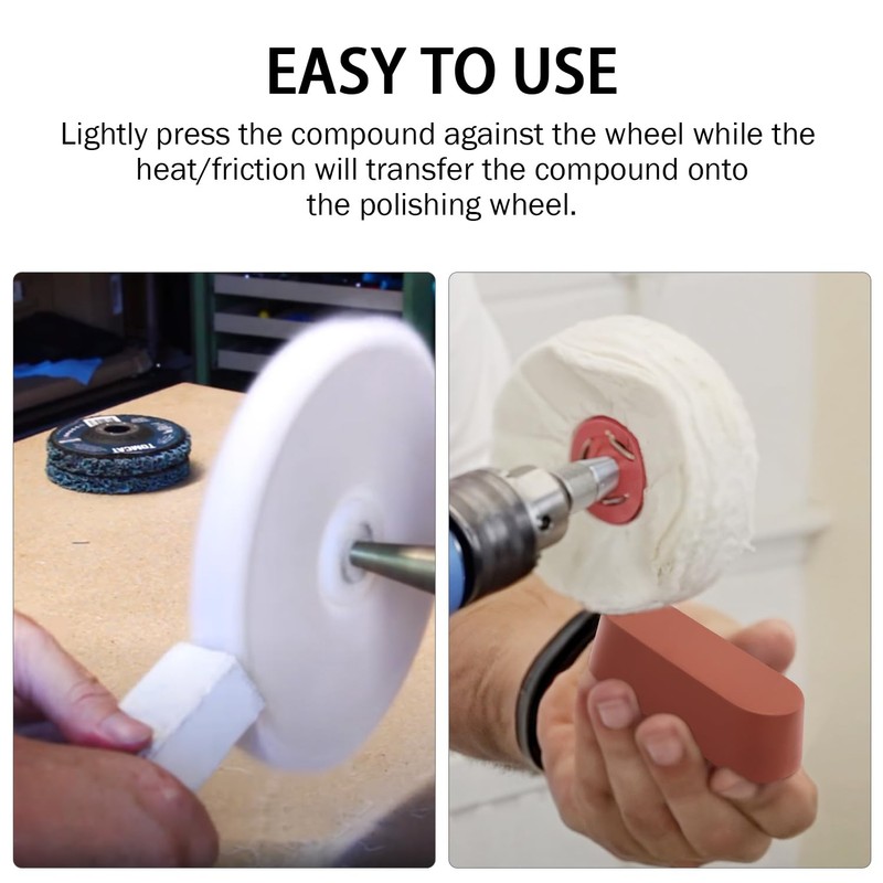 - How to UseThe buffing wheel Compounds are designed to be applied on buffing wheels by simply turning a buffing wheel on a grinder/motor/drill and lightly press the compound against the wheel while the heat/friction will transfer the compound onto the polishing wheel.