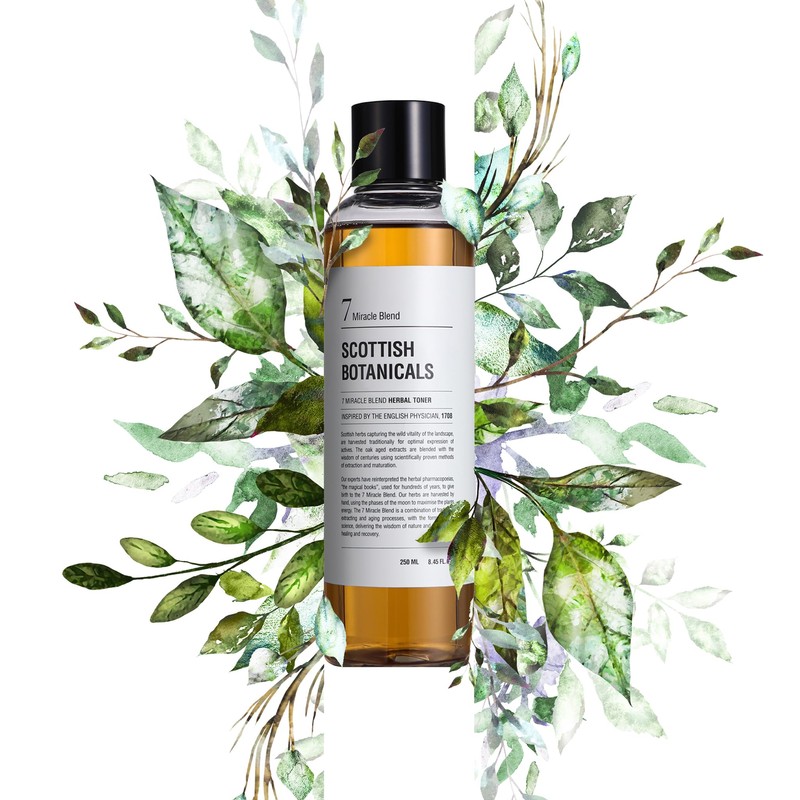 SCOTTISH BOTANICALS,7 Miracle Blend Herbal Toner, Botanical extracts, Purifying, Skin Toner, Vegan Skincare, Cleansing, 250ml, Diana Drummond