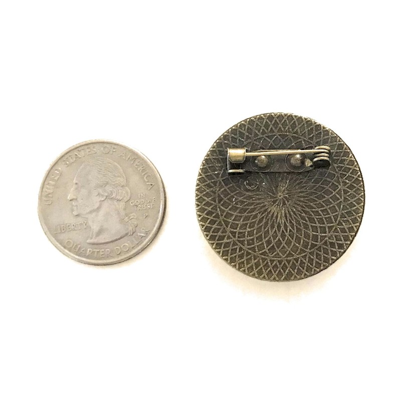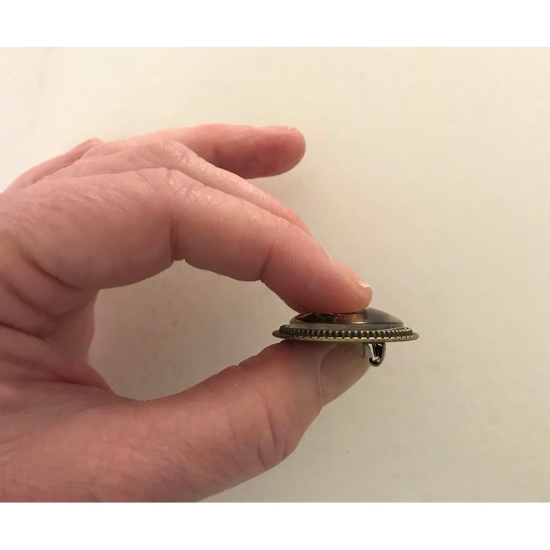 - Cabochon is set into a brass alloy pin tray with bar backing