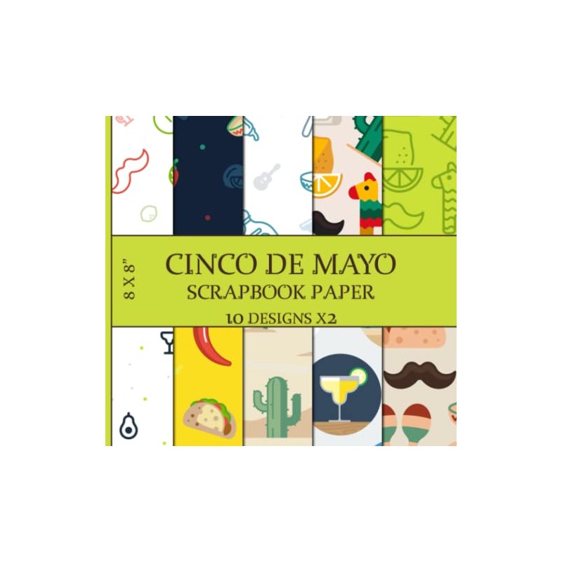 Scrapbook Paper: Cinco De Mayo Patterns, Decorative Craft Paper, Cardstock, Origami, DIY, & Crafting Projects - Double Sided 8 x 8" Sheets, 10 Designs X2