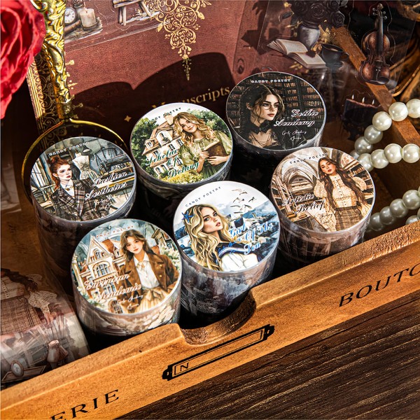 - Scrapbook accessories: 6 sets of PET tape stickers with girls on the theme, English words that appear in the life of the academy, desk and learning accessories and much more. An elegant design that loves detail is ideal for creative DIY craft projects.