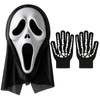 Scream Mask with Luminous Scary Gloves, Scary Halloween Ghost Mask for Adults, Horror Costume Accessories for Parties and Events, 2-Piece Set