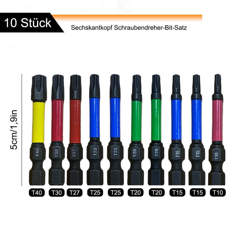 - Screwdriver bits set including in T10, T15 × 2, T20 × 2, T25 × 2, T27, T30, T40, 50 mm/1.9 inch length, can be deep enough, meet daily needs.