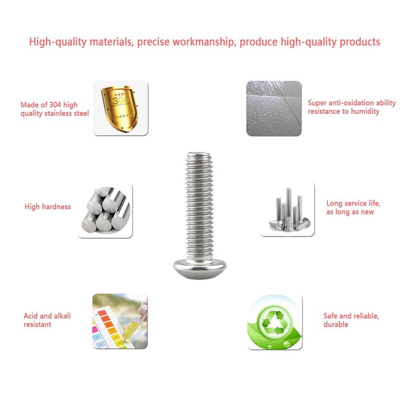 • 【Product Features】: Hex Socket Screws with large contact area on the head and more balanced force. When tightening the screw, the wrench is not easy to slip out, better to tight, the thread is firm and the force is even, and it is not easy to deform and slip during use, better plays the role of fastening.