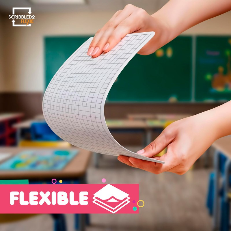 - Introducing Scribbledo FLEXIC – Our newest collection of flexible dry-erase sheets offers the same high-quality surface as our traditional boards but with added flexibility. These sheets are designed to be more affordable, lightweight, and space-saving, perfect for classrooms, homes, or on-the-go learning without the bulk of standard boards.