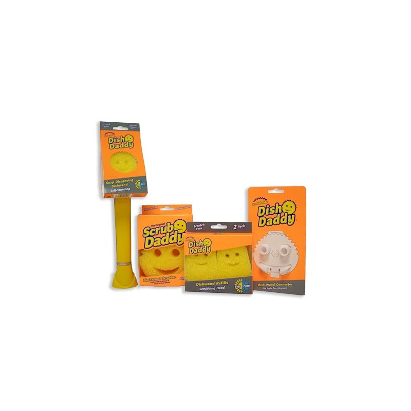 - The set contains: 1 x Scrub Daddy Dish Daddy Yellow, 2 x Yellow Refill Heads, 1 x Scrub Daddy Yellow Sponge, 1 x Connecting Head for using the Scrub Daddy Sponge with the Dish Daddy