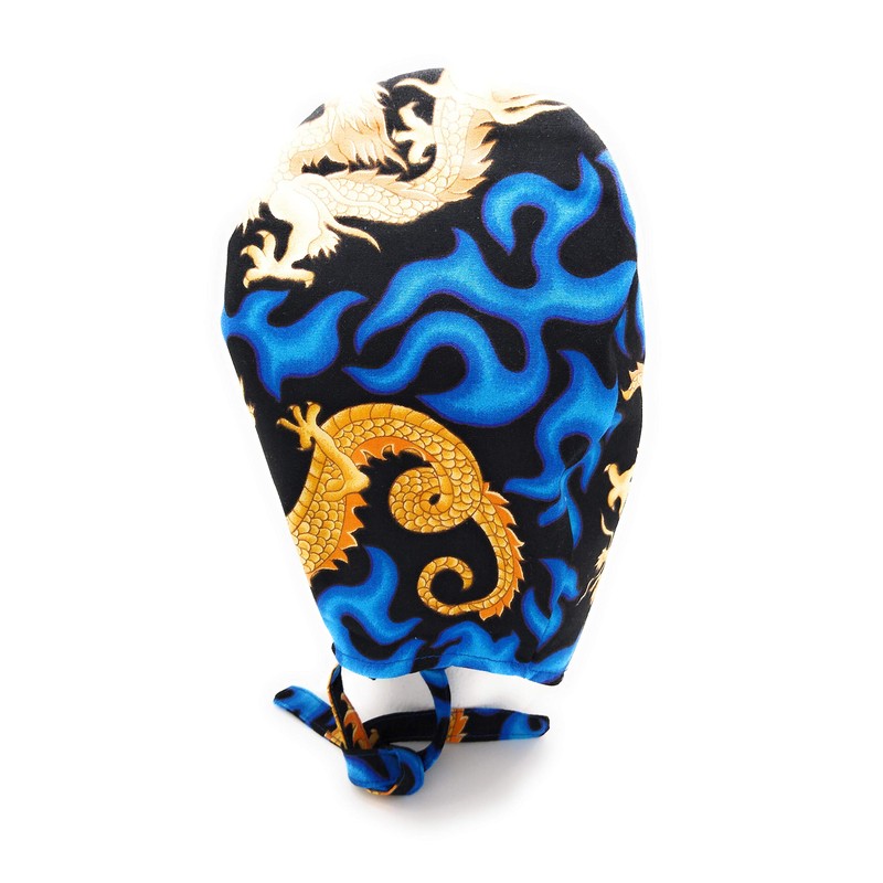 Scrub Hat Golden Dragons Blue Flames Fabric Cap Do-Rag Skull