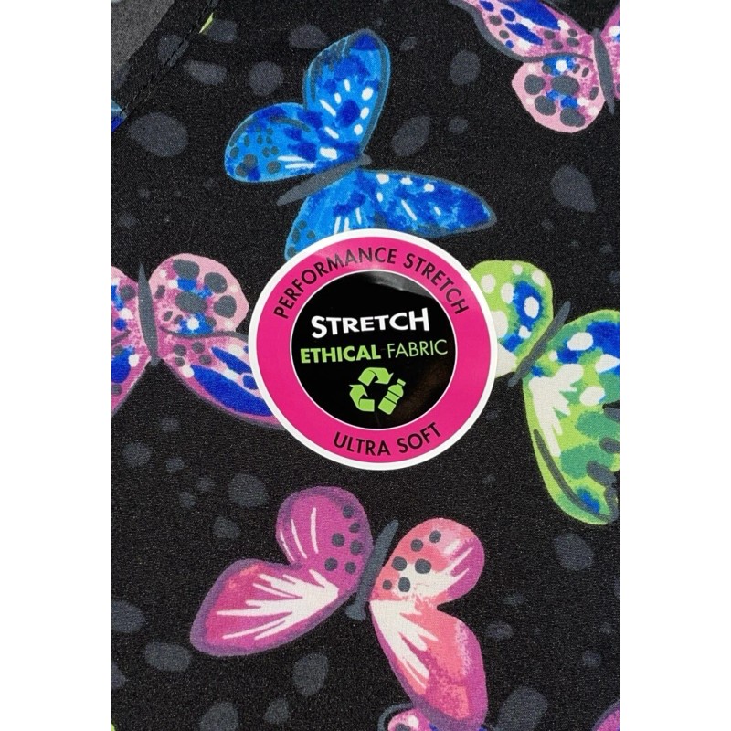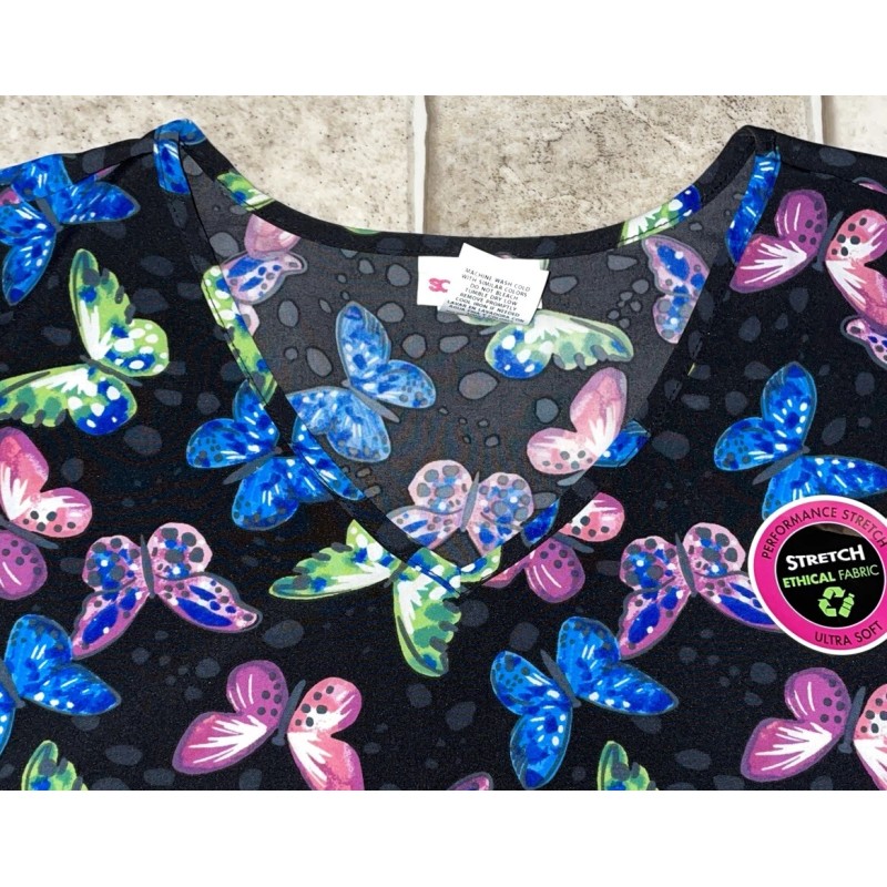 Scrubstar NWT Womens Black Butterfly Print Stretch Scrubstar Scrub Top Shirt Size 3XL