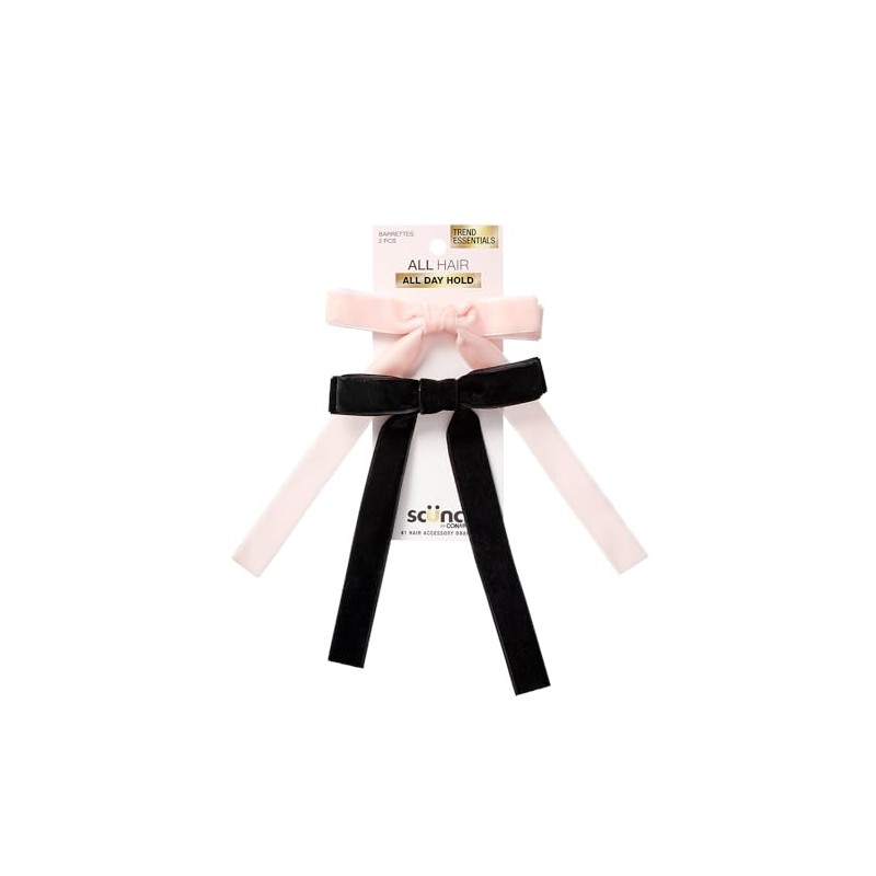 Scunci by Conair Bow Barrette - hair accessories for women - hair bows - bows - hair barrettes for women - Blush & Black