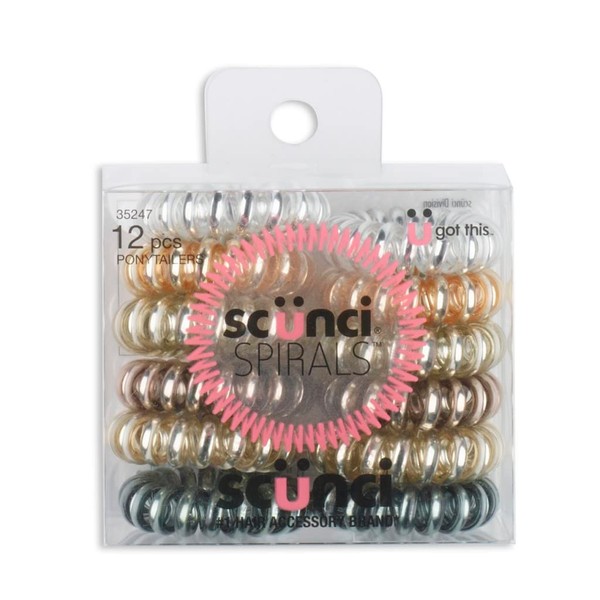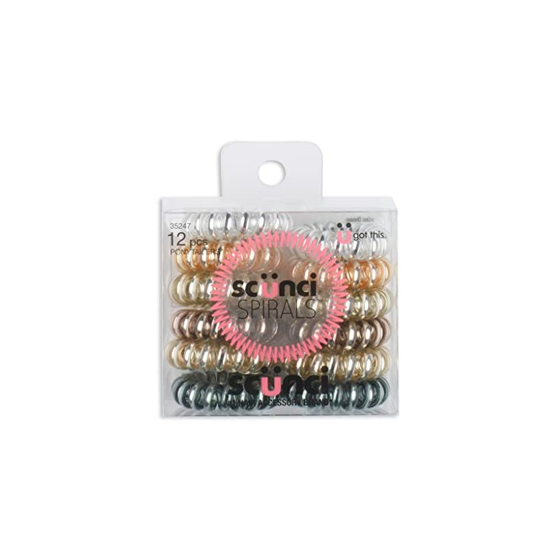Scunci Spirals In Acetate Bx Metallic – 12 pk