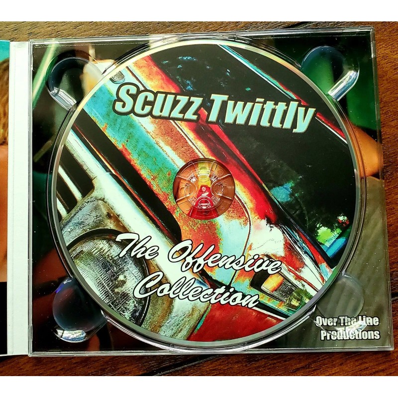 Scuzz Twittly "The Offensive Collection" CD - SIGNED. Includes 23 of his favorite hits that are guaranteed to offend the Karen at your BBQ! All songs are available for the first time in full 44.1 kHz CD quality audio.