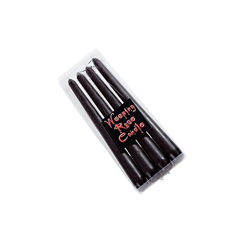 - A PACK OF 4 NOVELTY WEEPING ROSE BLACK TAPER GOTHIC CANDLES THAT ARE BLACK ON THE OUTSIDE BUT RED INSIDE SO AS THE CANDLE MELTS IT BLEED A DEEP RED!