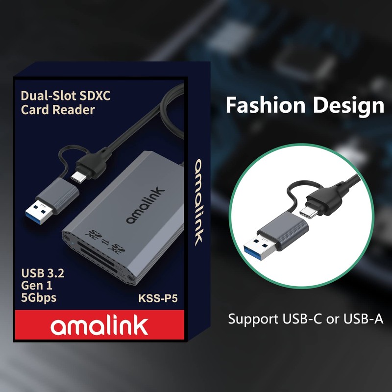 SD UHS-II Dual-Slot Card Reader .amalink Dual Slot USB C SD 4.0 Memory Card Reader Adapter .USB 3.2 Gen 1 Workflow Dual-Slot SDHC/SDXC UHS-II