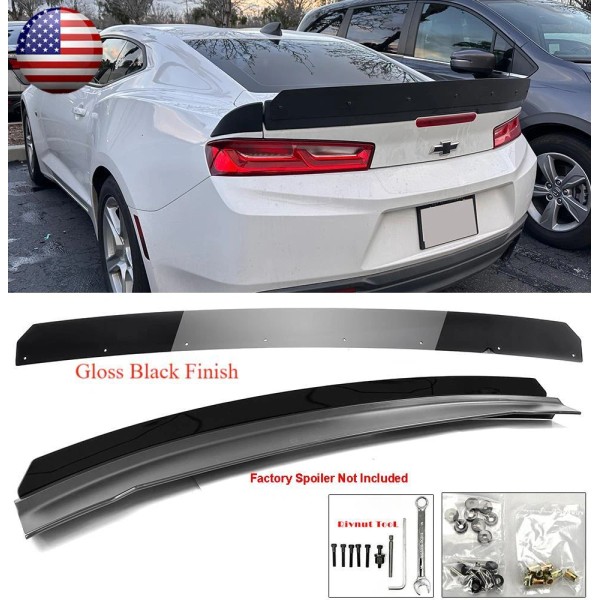 SDeelCase Gloss Black Decklid Black Spoiler Extension WickerBill Fit 16-24 Camaro 1LE SS