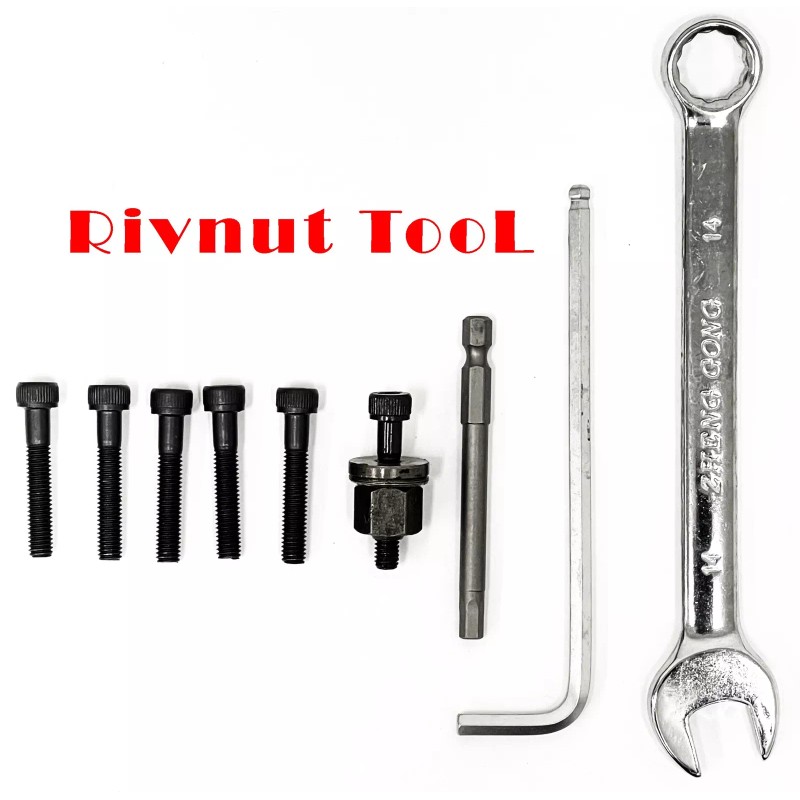 For the install a drill, 3/8 drill bit, screw driver, tape measure and Rivet Nut Tool are required.