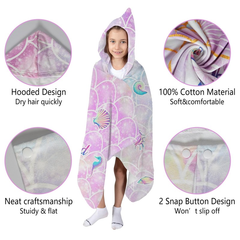 sdhinlwo Thickened Hooded Towels for Kids Suitable Girls Boys Kids Bath Towels, 30"x50" Super Absorbent, Mermaid Tail Cute Cartoon Toddler Towels Multi-Purpose for Beach, Pool and Bathroom