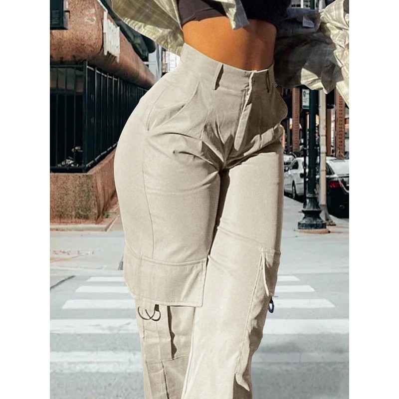 SDNGED Cargo Pants for Women High Waisted Casual Pants Work Pants Baggy Stretchy Wide Leg Y2K Streetwear with Pockets (US, Alpha, Medium, Regular, Regular, Apricot)