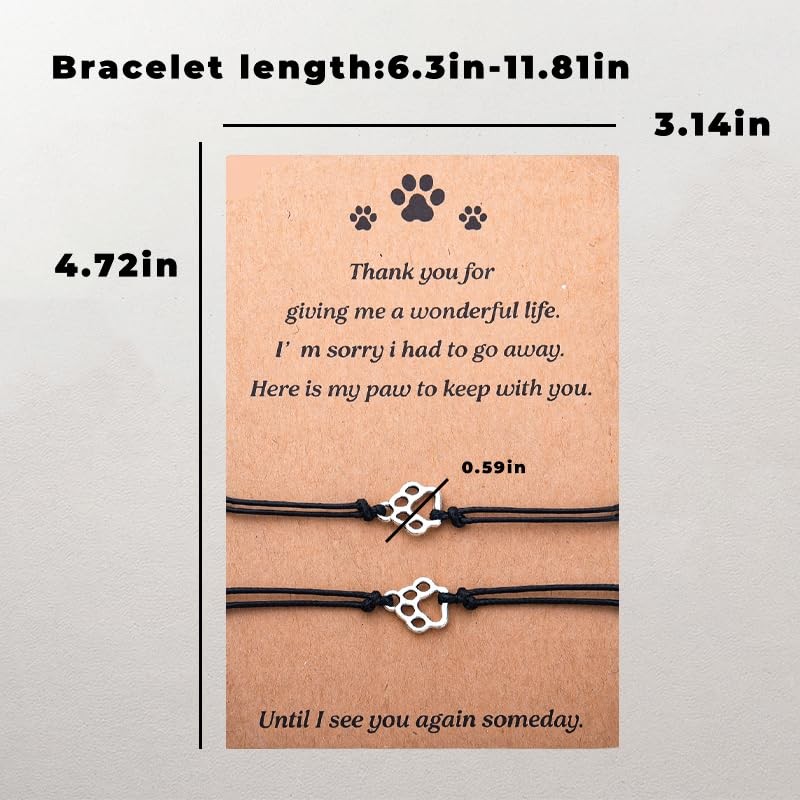 - Pet Memorial Gifts for Dogs Cats: Friendship bracelets for 2 remind owners of their dog's memory at all times, symbolizes the dog's place in the owner's heart, definitely bring a smile 's face, keep him/her has a sweet mood, condolence gift for loss of dog cat pets, dog lover gifts for women men dad mom