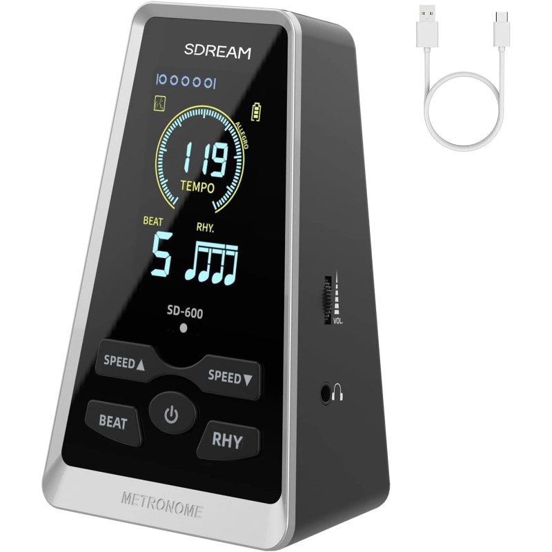 SDREAM Digital Metronome for Piano,Guitar,Violin,Rechargeable LCD Electronic Metronome with Human Voice,Professional Metronome for Beginners & Musicians,Instrument Volume & Beat Speed Adjustable