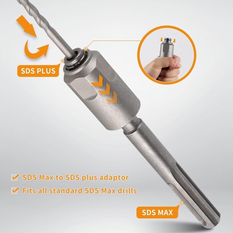 - SDS MAX to SDS PLUS Converter for no need more carrying a second hammer drill again. With this one, it allows to use less.expensive and often lighter sds plus on your sds max hammer drill.