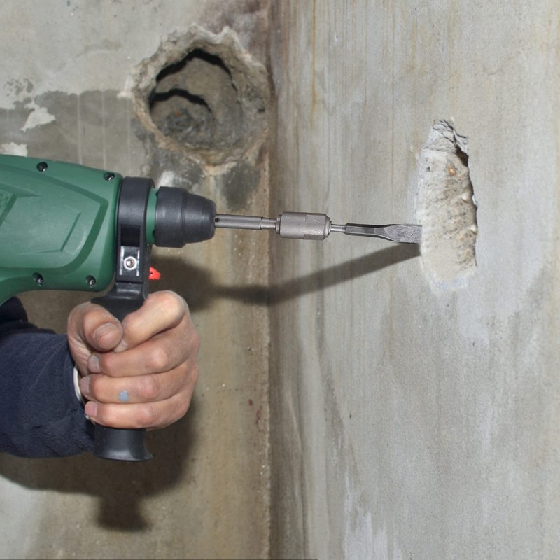 Use for hammer drills with SDS-Max receptacle, allows the use of SDS-Plus drill bits, chisels, drill bits