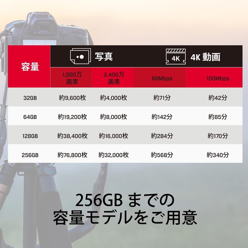 • カードタイプ:SDXC / Class 10 / UHS-II / U3 / V90