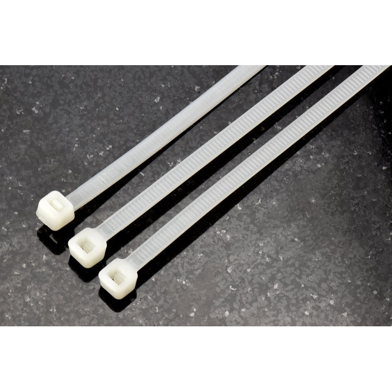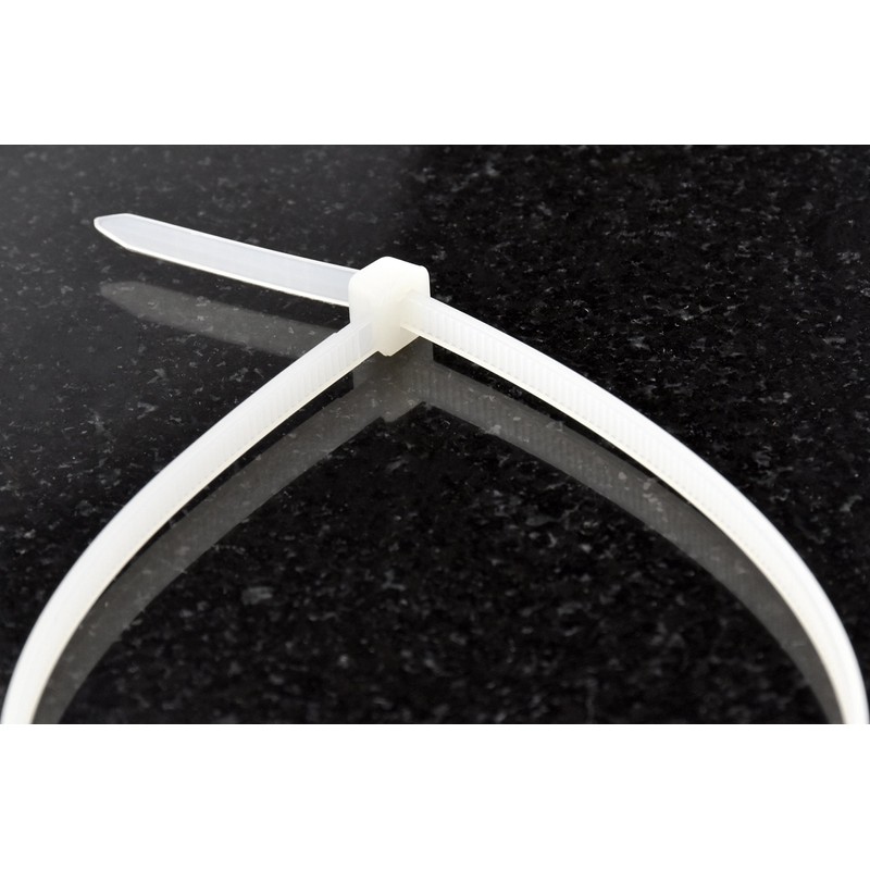 Features of this product include: . 100 cable ties . Color: White . Tensile strength: 50 lb. . Thickness: 4.2mm . UL-approved: E203148