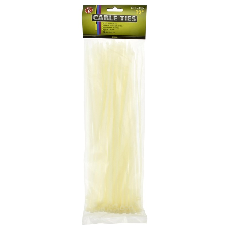 SE is committed to providing the customer with the best source for value possible. You will enjoy the quality, function and usefulness our SE CT1248N 12” White Cable Ties with 50-lb. Tensile Strength (100 Count) has to offer.