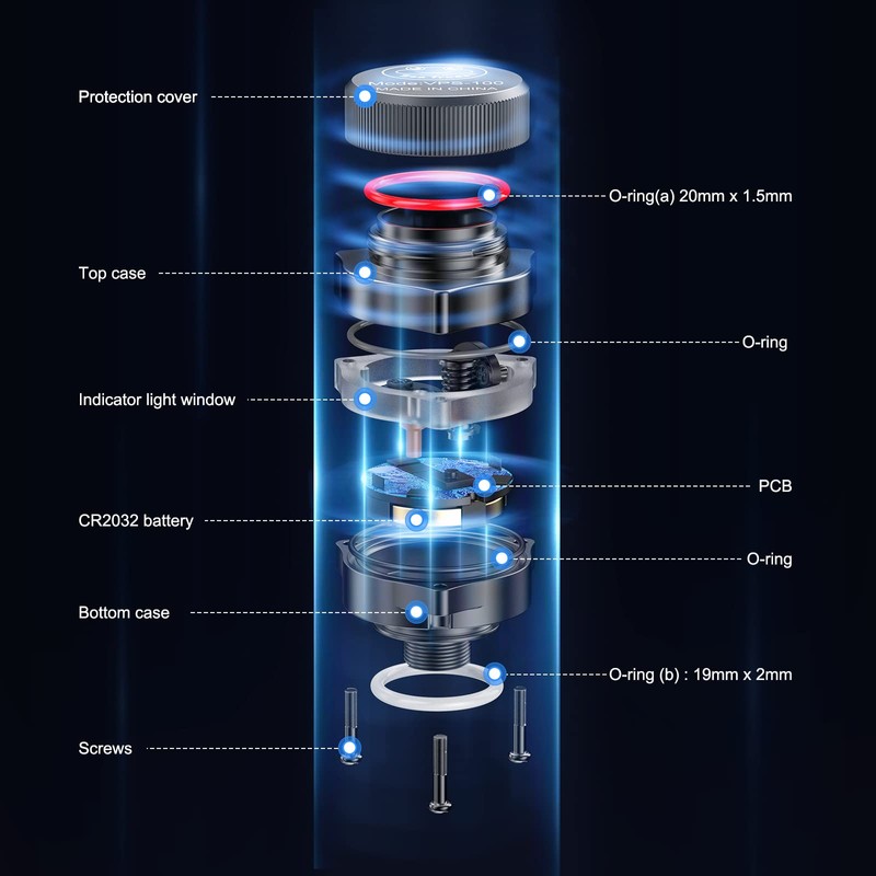 - The installation is simple and straightforward, just screwing the detector into the accessory port, draw a vacuum on your housing and wait for few minutes, then you can check the water tightness immediately