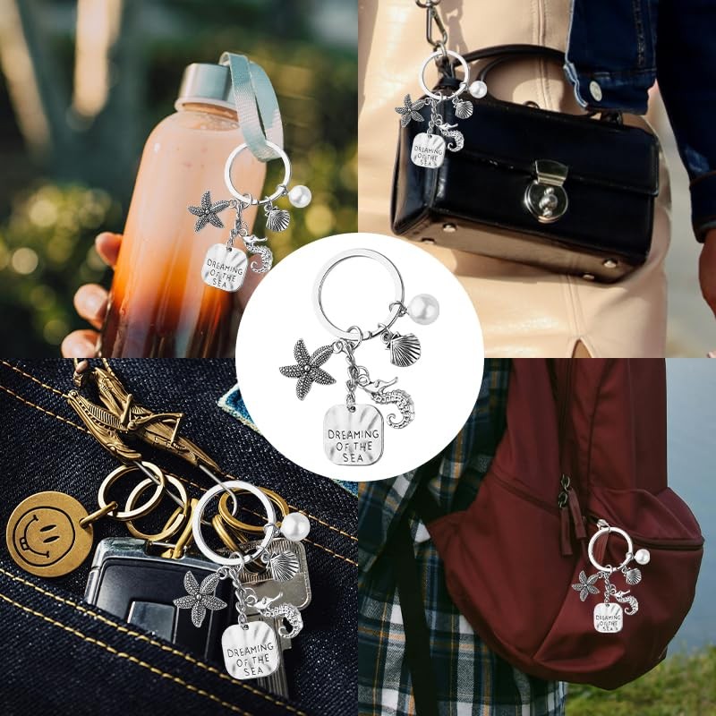 This sea key rings are suitable for many items, Can be used as a good ideal to ornament your keys, home key decorations, office key charms, car keys decorations, suitable for decorating handbag charms, shoulder bags decoration, messenger bag charms, backpack wallet accessories, purse bag charms decoration, anything you want to decorate our sea lover key rings can all help you achieve
