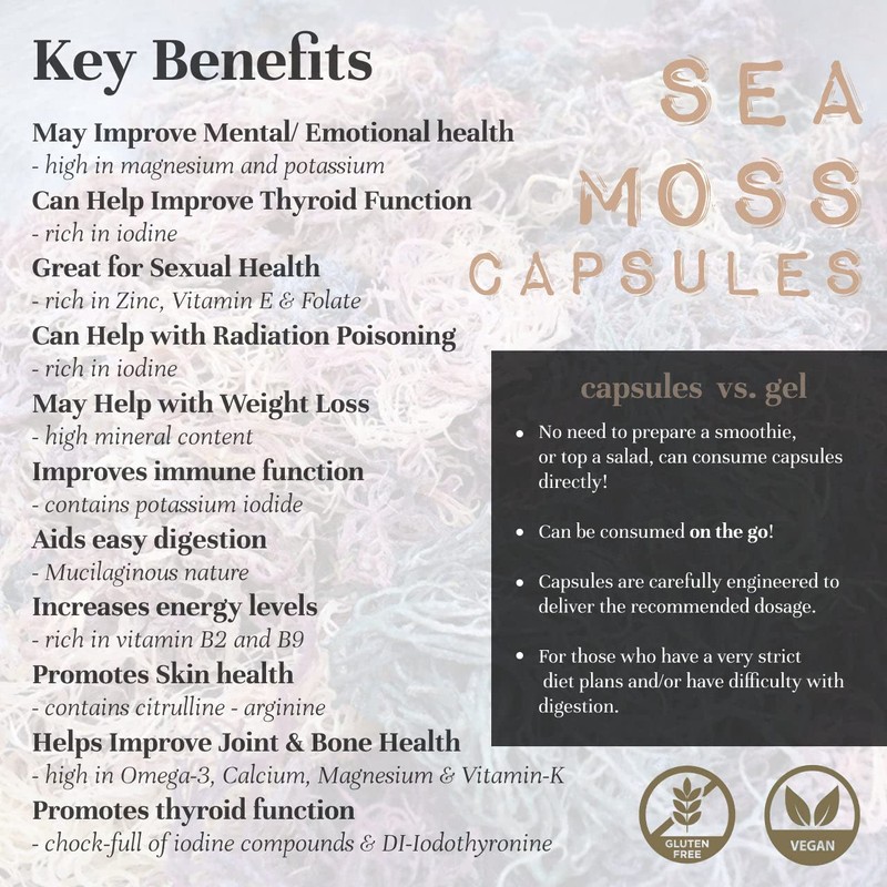 - Although being more versatile, the Sea Moss Gel could be ignored in a busy lifestyle, and this is where the capsules can be essential.