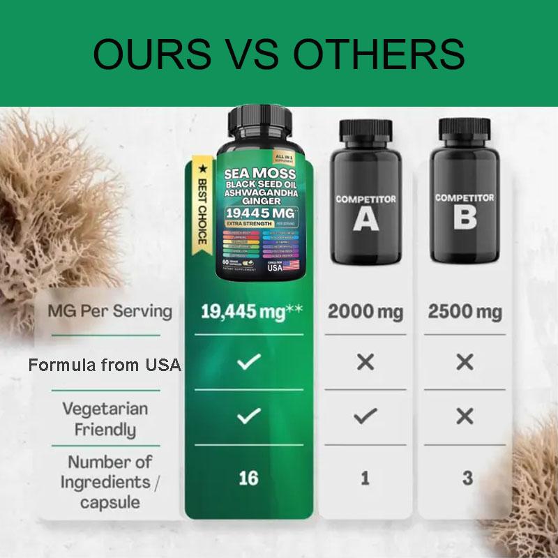 Sea Moss Supplement, vegan and sugar-free,Sea Moss, Black Seed Oil, Ashwagandha, Turmeric, All-in-One Formula with over 15+ Super Ingredients, Extra Strength & High Potency, 60 Capsules