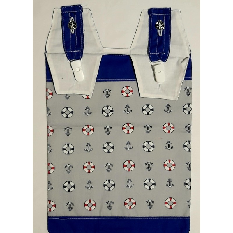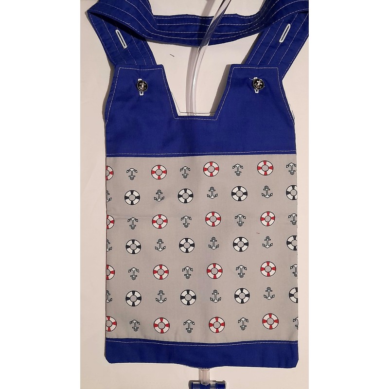 Sea Side. Grey. Catheter Night Bag Holder with a Handle and Bag Supportive Clips, Cover.100% Cotton. Patchwork Quality.