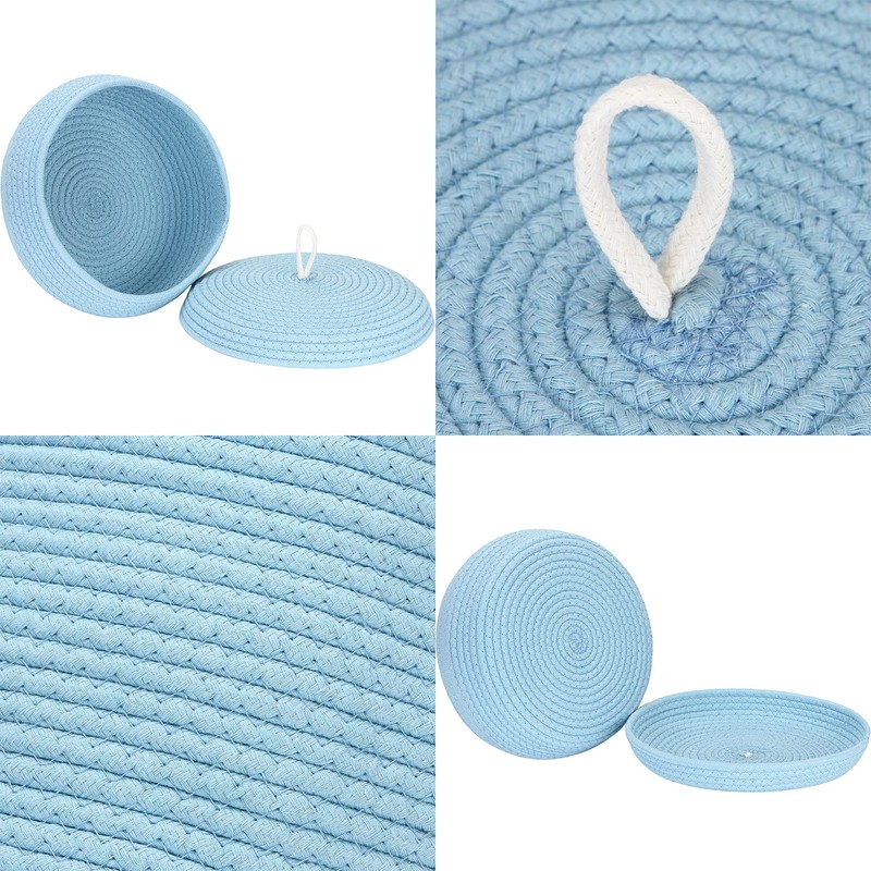 Sea Team Elegant Round Cotton Rope Storage Basket with Lid - Multifunctional Organiser for Snacks, Towels and Much More - Ideal for Your Home, 13 x 5.5 Inches (Large, Flat, Blue)