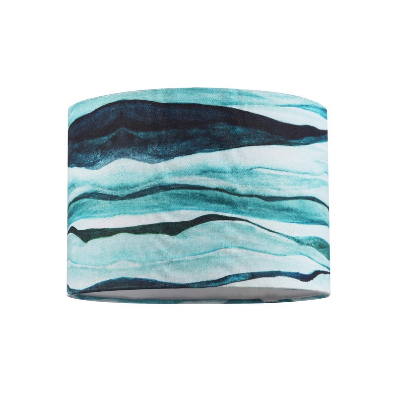 Sea Waves Drum Lamp Shade in Teal Duck Egg and Navy Blue - 25cm Quality Textured Linen Fabric with White Cotton Lining by Happy Homewares