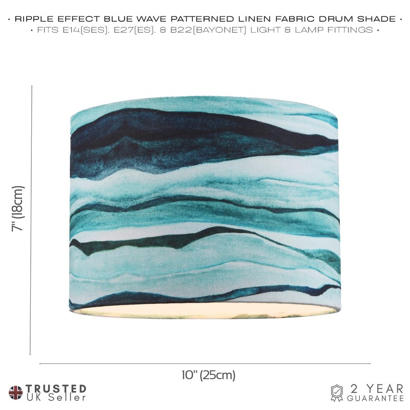 - Contemporary and sleek circular drum shaped lamp shade suitable for table lamp or pendant. Features horizontal sea waves subtle design which creates a unique effect.