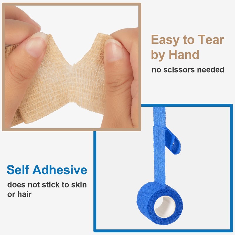 - [Vielseitige Selbsthaftende Bandage] - Selbstklebende verband gut zum Komprimieren neuer Verletzungen, zur Linderung von Schwellungen und zur F?rderung der Heilung. Ideal bei Zerrungen und Verstauchungen. Sportliche nutzen gerne die Elastische Binde sport an Handgelenken, Fingern und H?nden zur Stabilisierung. Selbstklebende Bandage koh?sive k?nnen auch auf Tattoo-Griffabdeckungen, Griffen und Flaschen verwendet werden, um ein Verrutschen zu verhindern.