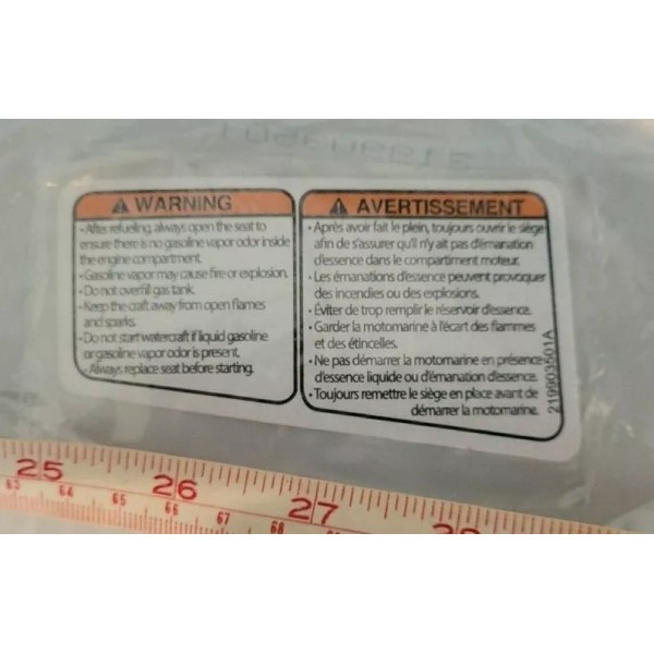 Are your factory decals faded, scratched or peeling? These will help you to complete your watercrafts' new look. These are FUEL WARNING LABEL.