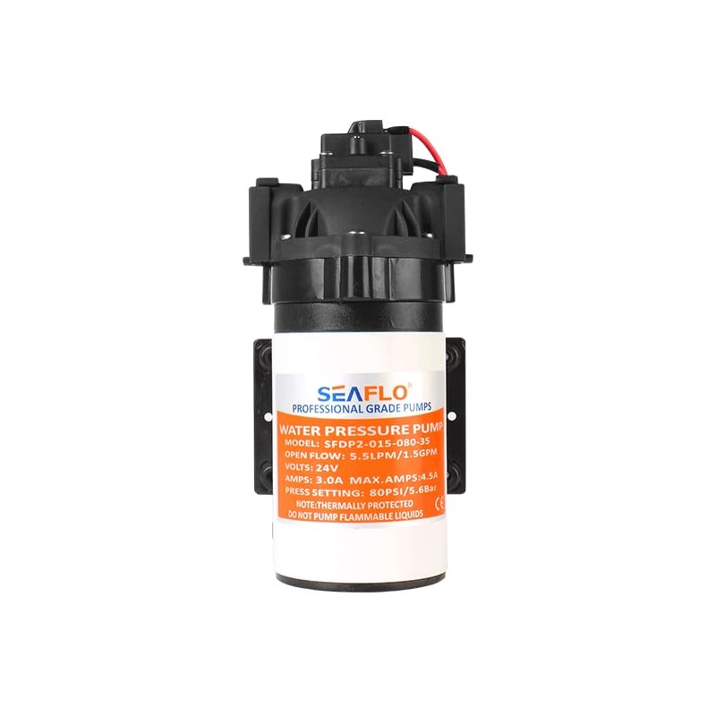 SEAFLO 12V 1.8 GPM 80 PSI 35-Series DC Diaphragm Pump – Self-Priming High-Pressure Water Pump for RVs, Boats, Agriculture, and Cleaning – Quiet Operation, Run-Dry Safe, Built-In Pressure Switch