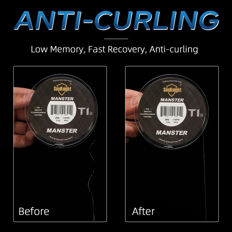 SeaKnight T1 II Double Layers Fluorocarbon Coated Line 50m/100m Carp Fishing Line Transparent Invisible Monofilament Fast Sinking Clear Leader Line for Saltwater Sea Fishing 3-100LB