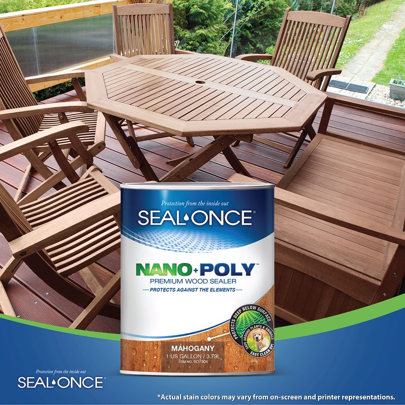 Seal-Once Nano+Poly Penetrating Wood Sealer with Polyurethane - Premium Waterproof Sealant -1 Gallon & Mahogany