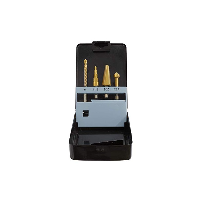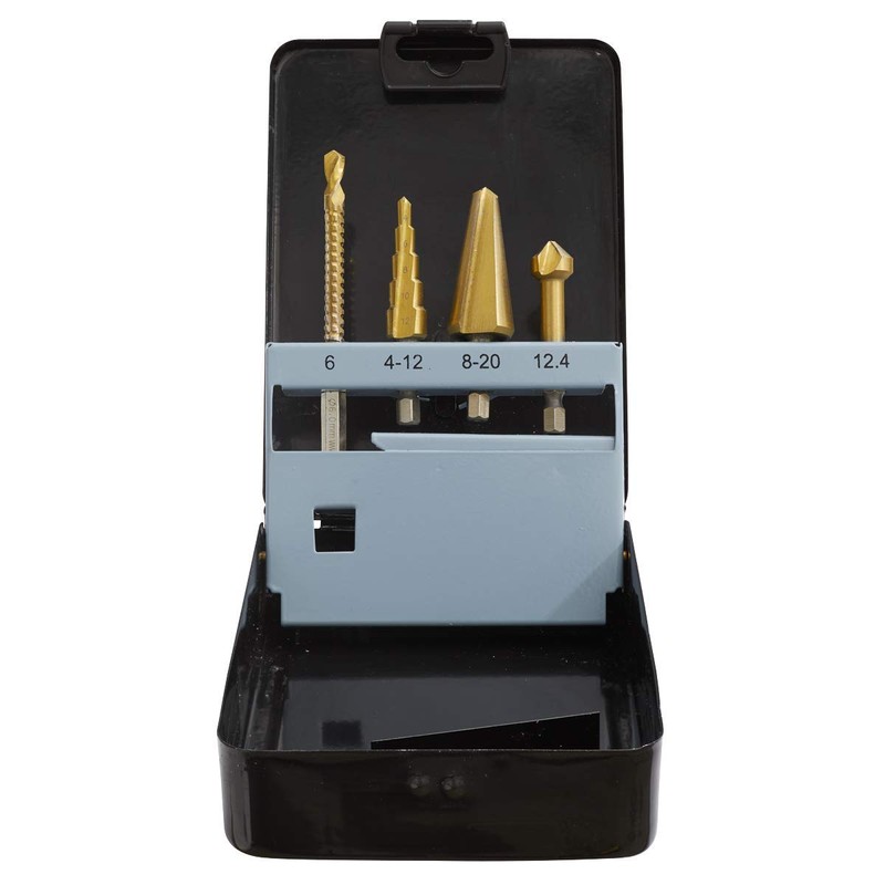 - Contents: 4-12mm Step Drill, 8-20mm Tube Drill, 6mm Drill Saw, 12.4mm Countersink.
