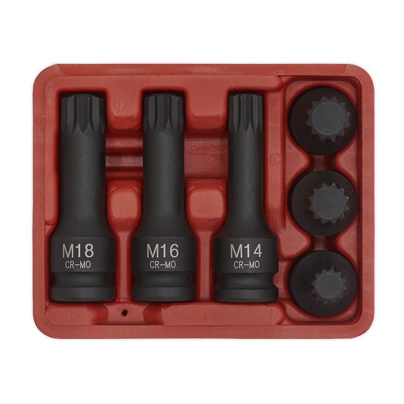 Sealey SX052 Impact Spline Socket Bit Set 6pc 1/2"Sq Drive