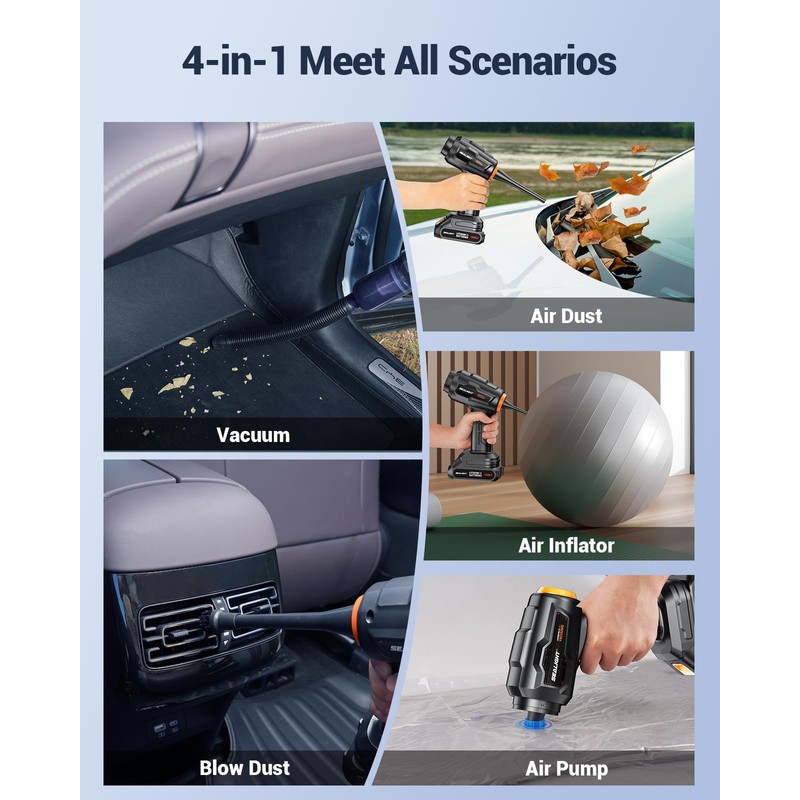 - 21000Pa High Power Suction: The high-speed brushless motor provides a strong suction force of 120AW / 21000Pa, making it easy to pick up stubborn sand, dust, and debris. Seaight car vacuum improves suction by 75% , perfectly addressing your concerns about suction